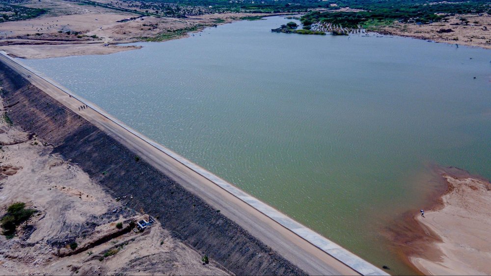 Moreover, General Manager Daarood elaborated on the characteristics of the dam while the President and other key personnel observed them firsthand. He noted that the dam's volume has significantly increased during President Irro's short time in office. Initially holding 1.1 million cubic meters (roughly equivalent to 5.5 million barrels), its capacity was first enhanced to 1.4 million cubic meters and finally to 1.8 million cubic meters (equivalent to approximately 9 million barrels).